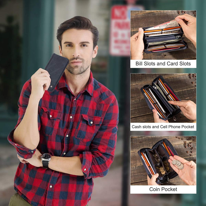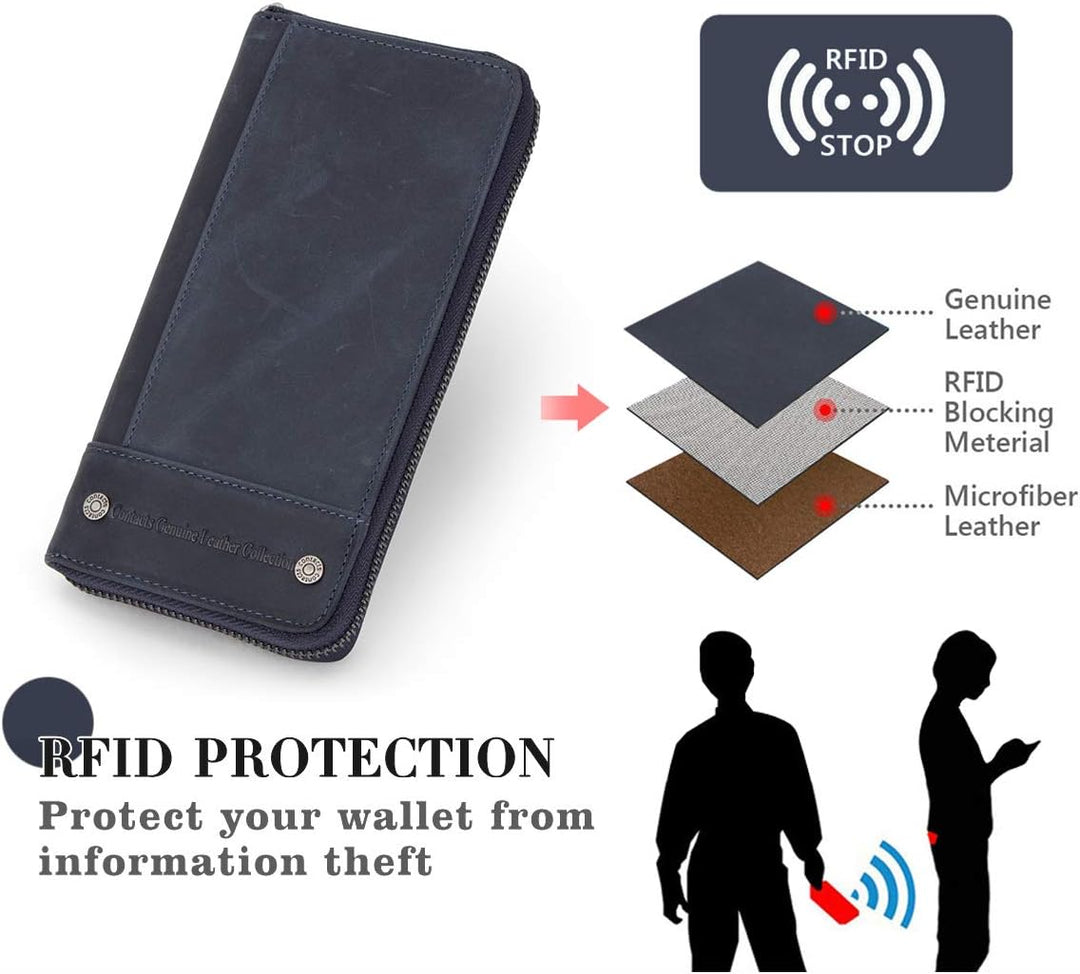 - Die lange Brieftasche mit Reissverschluss um den Verschluss besteht aus echtem Leder und das Futter besteht aus Polyester und RFD-Stoff. Es kann sowohl für geschäftliche als auch für gelegentliche Anlässe verwendet werden.