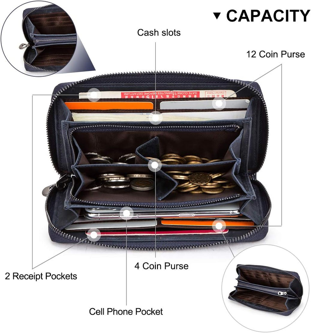- 2 grosse Fächer bieten Platz für Banknoten, iPhone, Handy und grosses Bargeld, und 1 Reissverschlussfach in 4 Münzfächern zur Aufbewahrung von Münzen, Quittung;