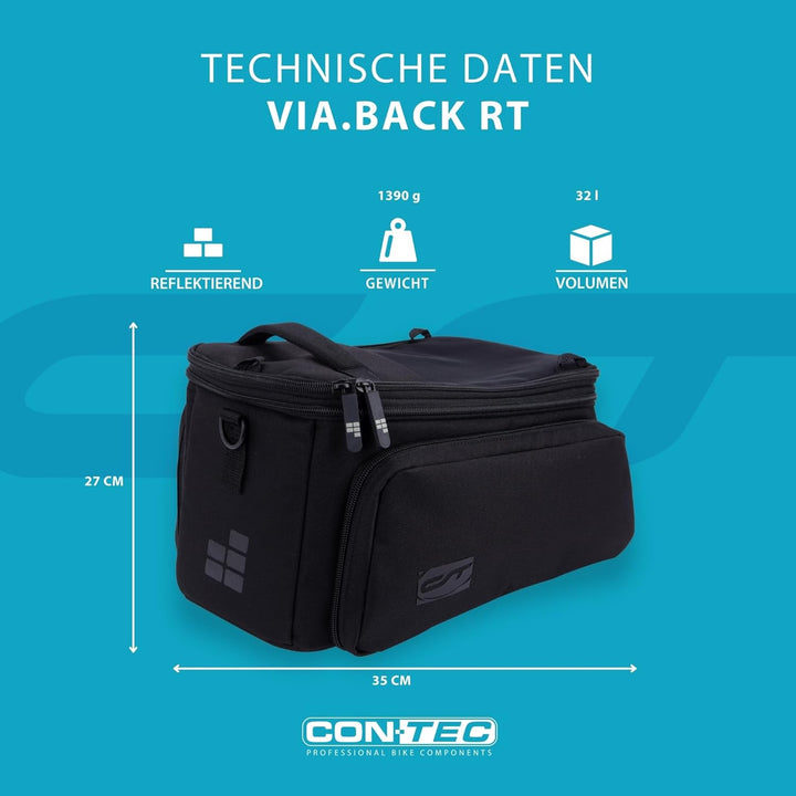 - Viel Stauraum: Mit einem Volumen von 32 Litern bietet die Gepäckträgertasche ausreichend Platz für Ihre persönlichen Gegenstände. Das grosse Hauptfach kann nach oben erweitert werden und ermöglicht eine flexible Nutzung. Zudem verfügt die Tasche