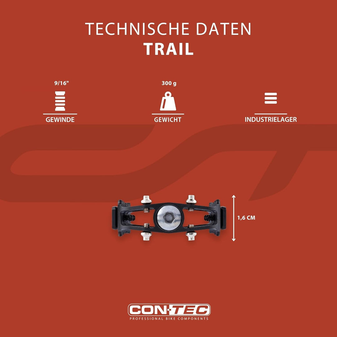 Contec Fahrrad Pedale Trail Alu MTB Freeride CNC CrMo Achse Pins 416g, Trail