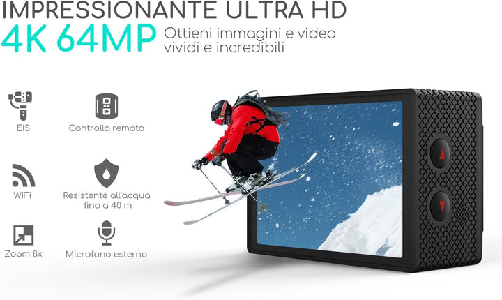 - Externes eingebautes Mikrofon und 170 ° Weitwinkel: damit Sie Videos mit klarem Klang auch an lauten Orten wie beim Skifahren geniessen können; 170° Weitwinkelobjektiv ermöglicht es der Kamera die Landschaften oder wichtige Momente besser zu fotografieren