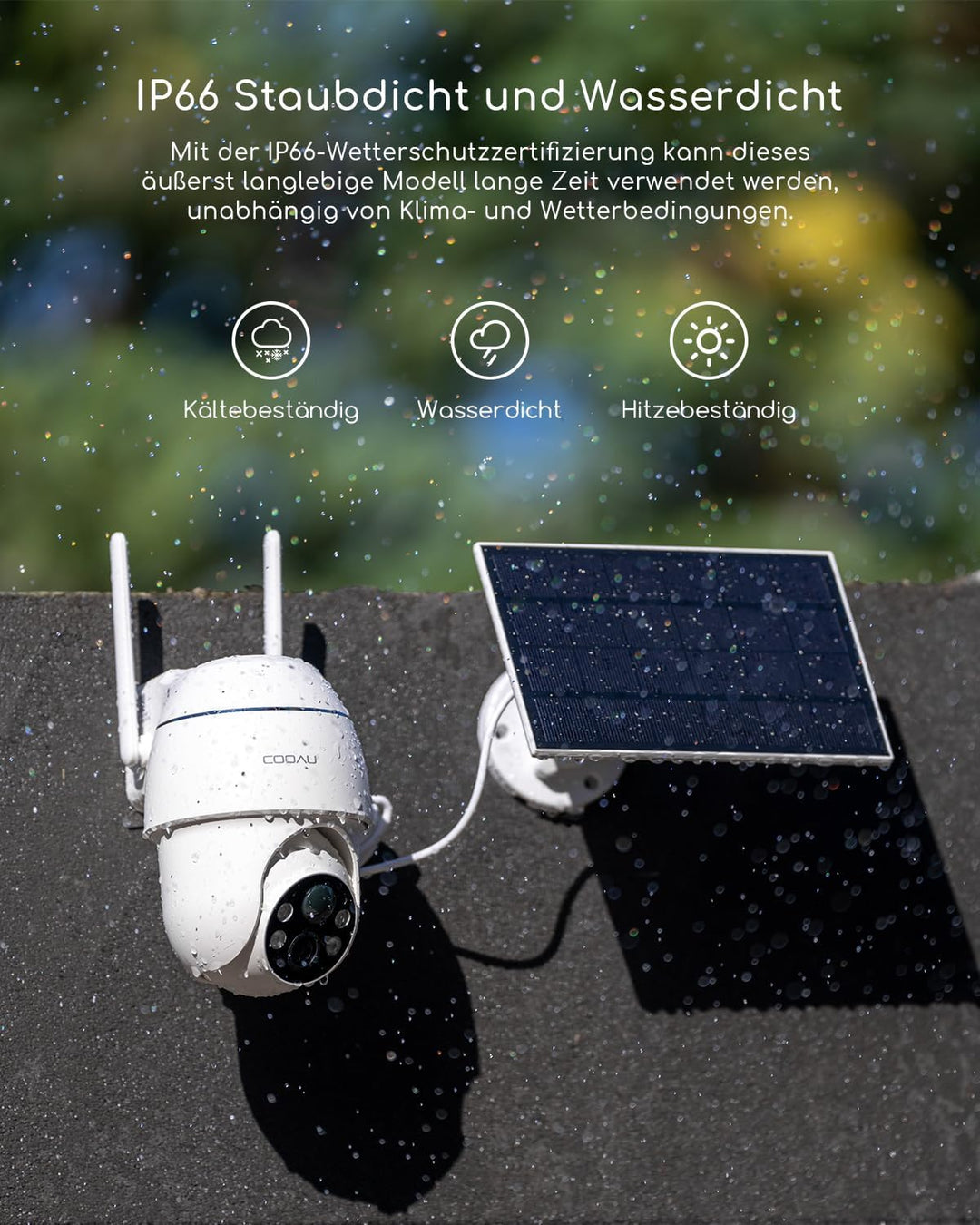 - 【Eingebauter Akku mit grosser Kapazität + Solarpanel für kontinuierliche Akkulaufzeit】Die kamera überwachung aussen verfügt über einen eingebauten wiederaufladbaren Lithium-Akku und ist mit einem umweltfreundlichen COOAU-Solarpanel ausgestattet,