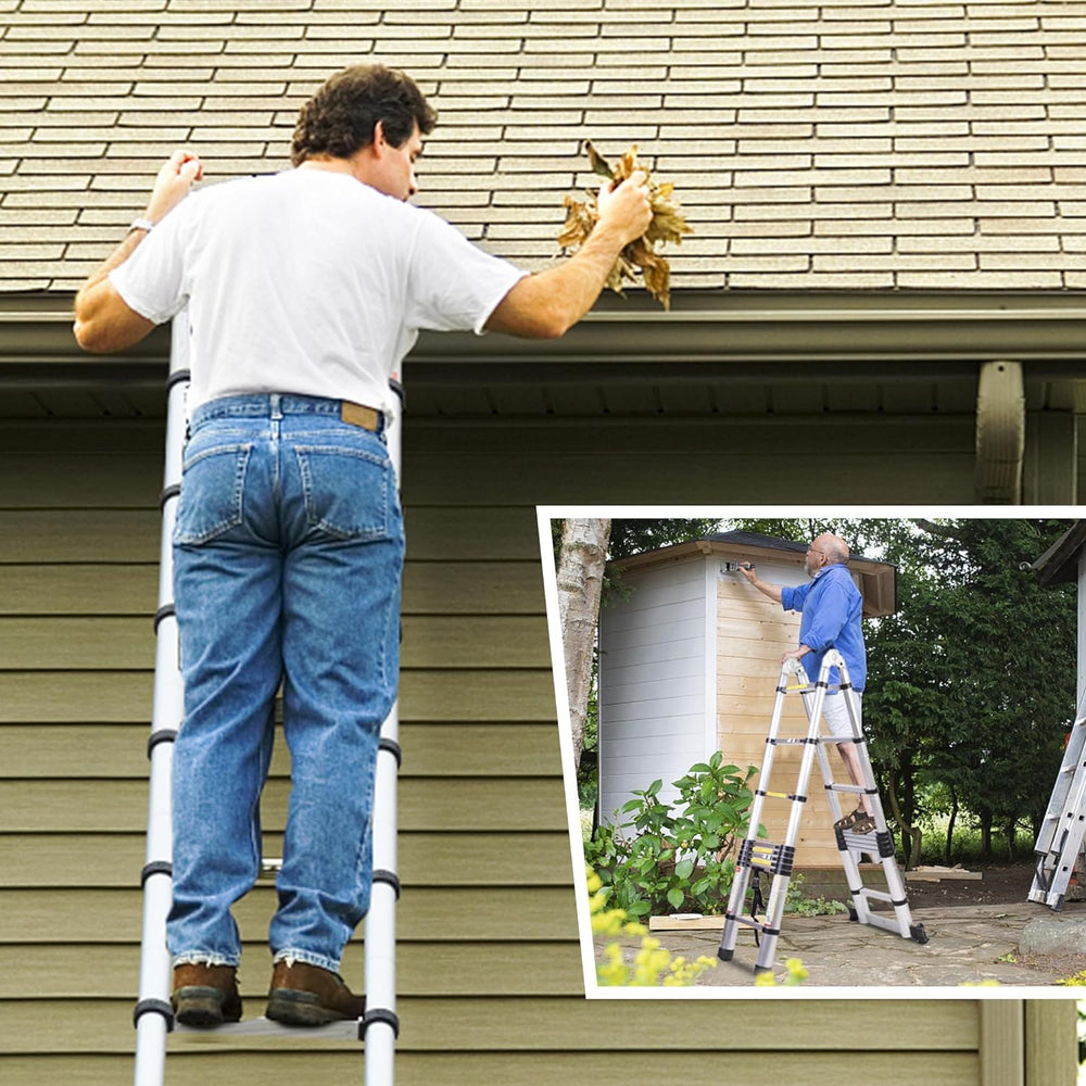 - ➤ Vielseitigkeit: Diese 5M Teleskopleiter ist perfekt für eine Vielzahl von privaten und professionellen Anwendungen, wie Reparaturen, Fensterreinigung, Innen- und Aussenbauarbeiten, Gartenarbeit und mehr