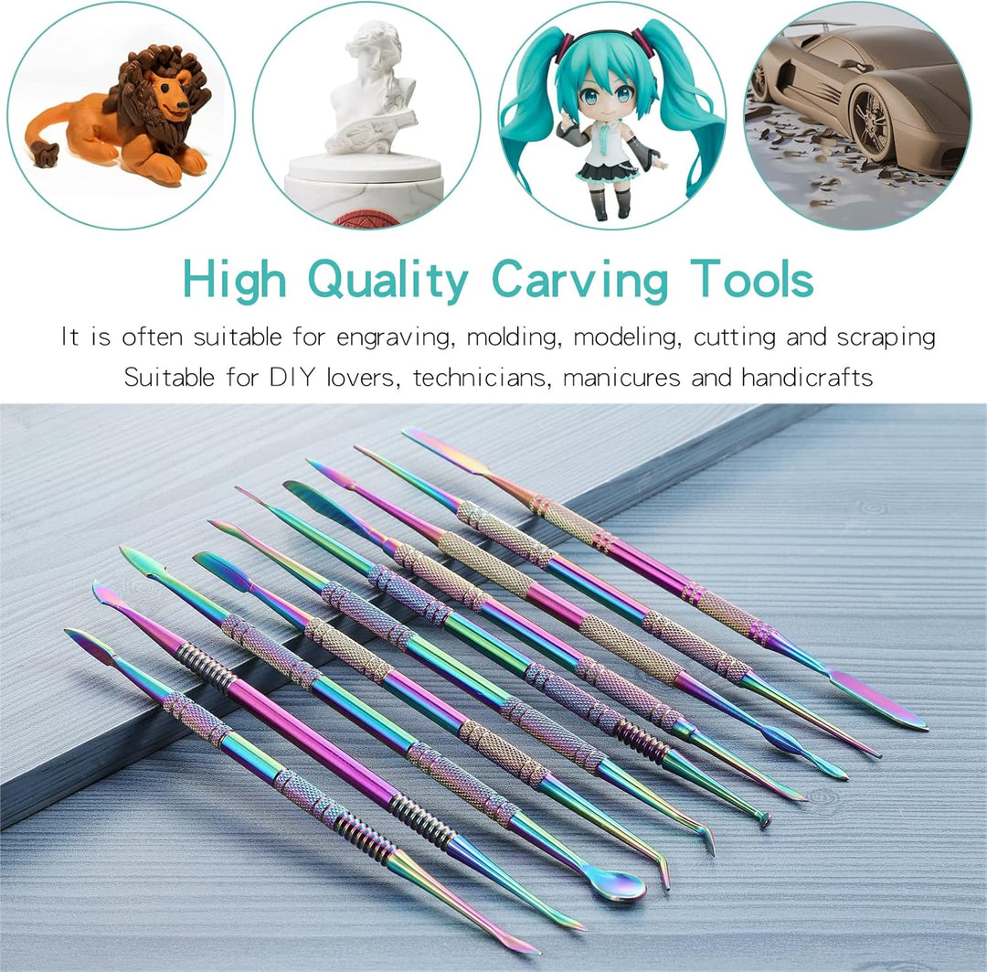 Coolty 10 StĂŒck Ton-Wachs-Schnitzwerkzeug, Modellierwerkzeug Doppelseitiges Edelstahl Werkzeug-Kit,