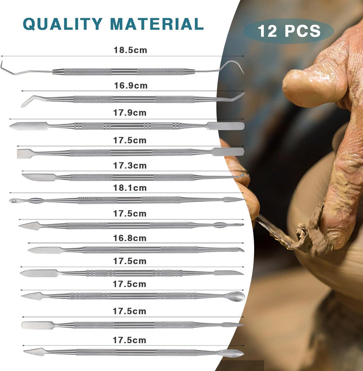 Coolty 12 Stück Tonwachs Schnitzer Werkzeuge, Doppelseitige Edelstahl-Wachs Ton Modellierung Schnitz