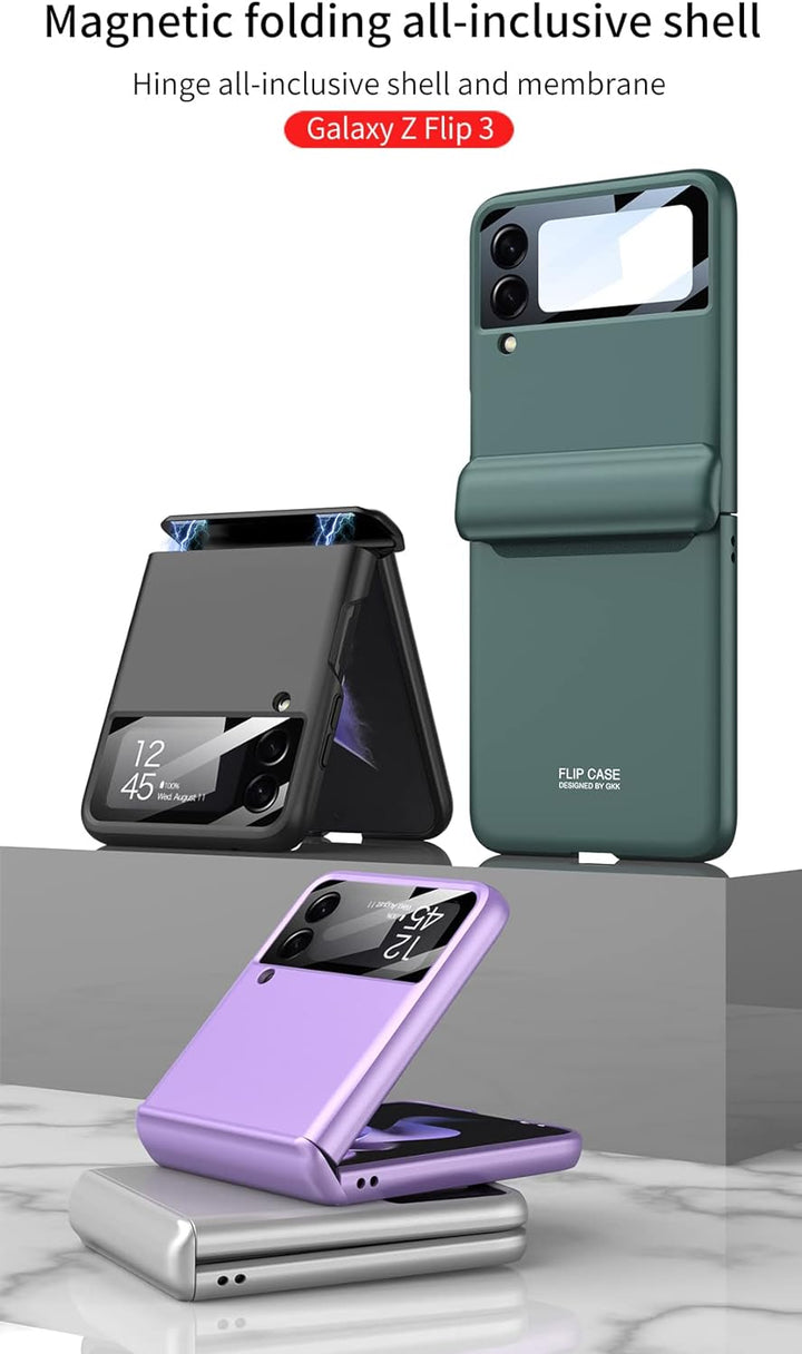 - Galaxy Z Flip 3 5G-Gehäuse mit aufklappbarem Design, 360 ° All-Inclusive-Scharnier, 150 ° faltbares magnetisches Gerät zur automatischen Wiederherstellung.