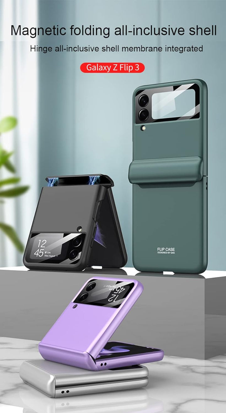 • Galaxy Z Flip 3 5G-Gehäuse mit aufklappbarem Design, 360 ° All-Inclusive-Scharnier, 150 ° faltbares magnetisches Gerät zur automatischen Wiederherstellung.