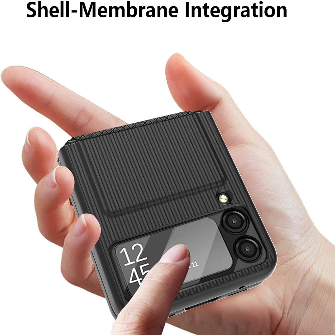 - Ultradünne All-Inclusive-Telefonhülle mit Klappbildschirm, die für das Samsung Galaxy Z Flip 3 5G entwickelt wurde.