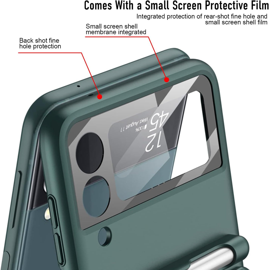 - Galaxy Z Flip 3 5G Gehäuse zum Aufklappen, Gehäuse mit Schutzfolie, Touch-Stylus, Stifthalter, 360°All-Inclusive-Scharnier.