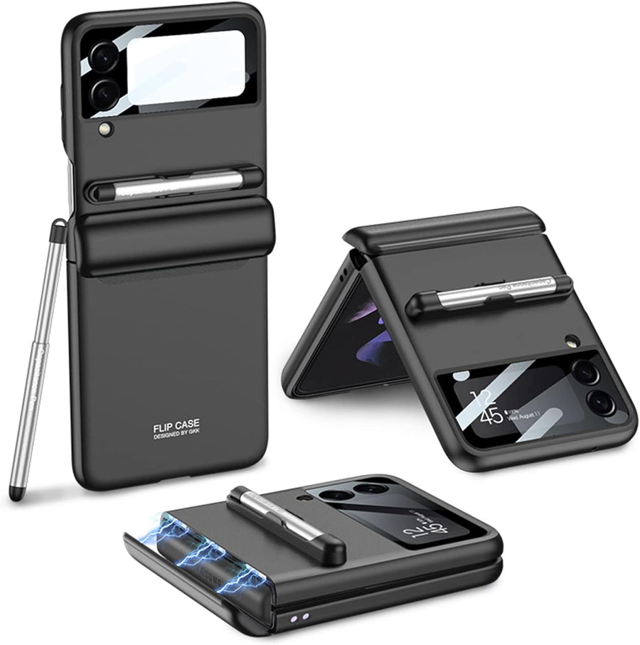 - Galaxy Z Flip 3 5G Gehäuse zum Aufklappen, Gehäuse mit Schutzfolie, Touch-Stylus, Stifthalter, 360°All-Inclusive-Scharnier.