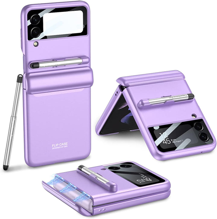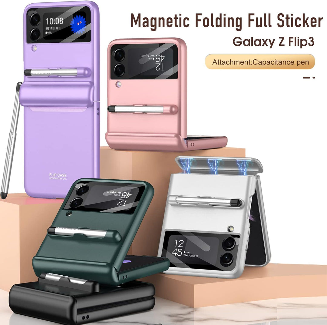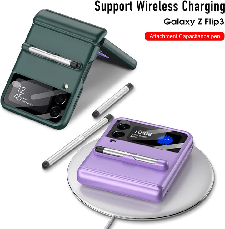 - Galaxy Z Flip 3 5G Gehäuse zum Aufklappen, Gehäuse mit Schutzfolie, Touch-Stylus, Stifthalter, 360°All-Inclusive-Scharnier.