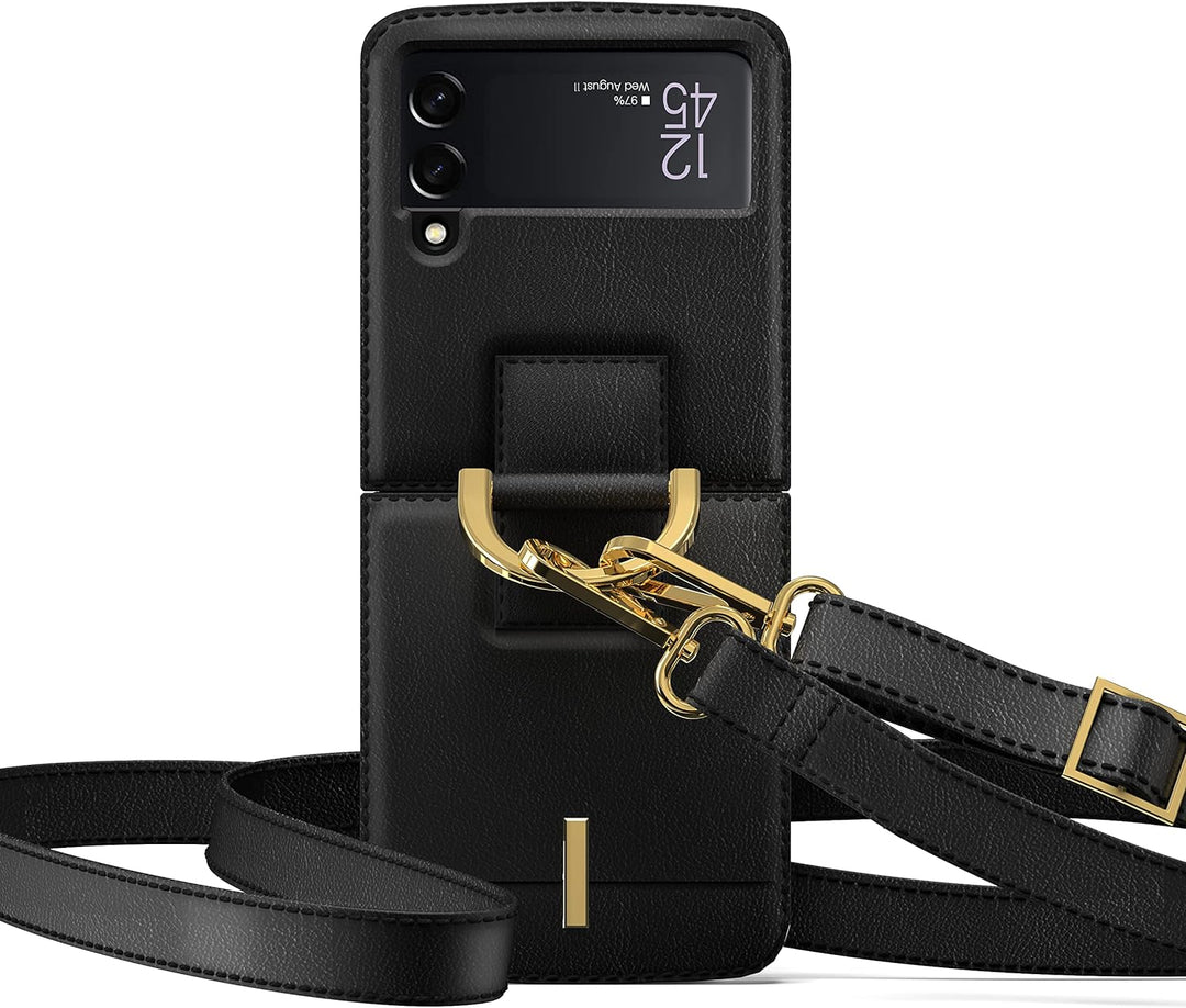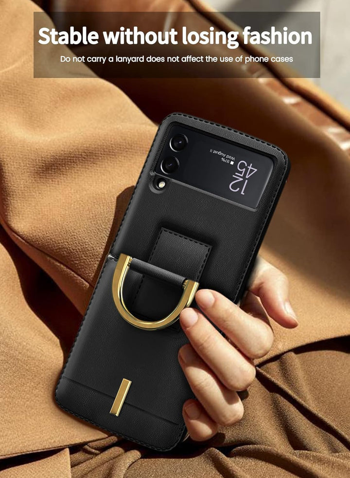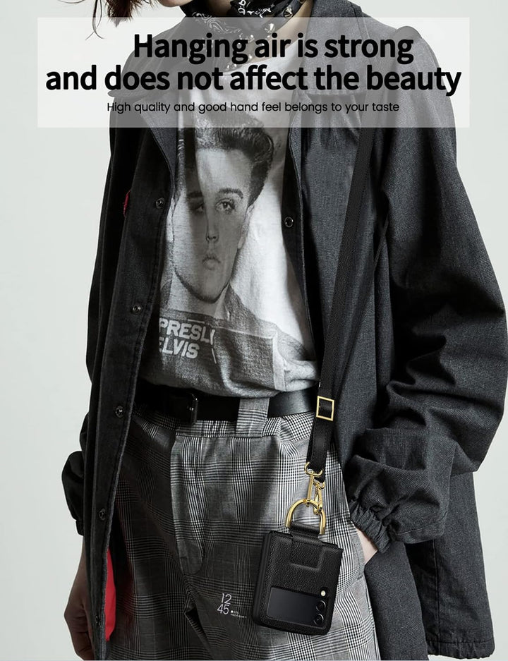 - Handgemachter Schultergurt des dünnen Ledermetallrings Schutzhülle für Samsung Galaxy Z Flip 4 5G-Handy. Handyhülle wird in Sekunden zu einer exquisiten kleinen Tasche.