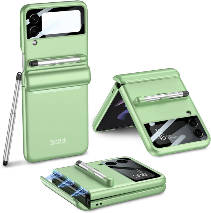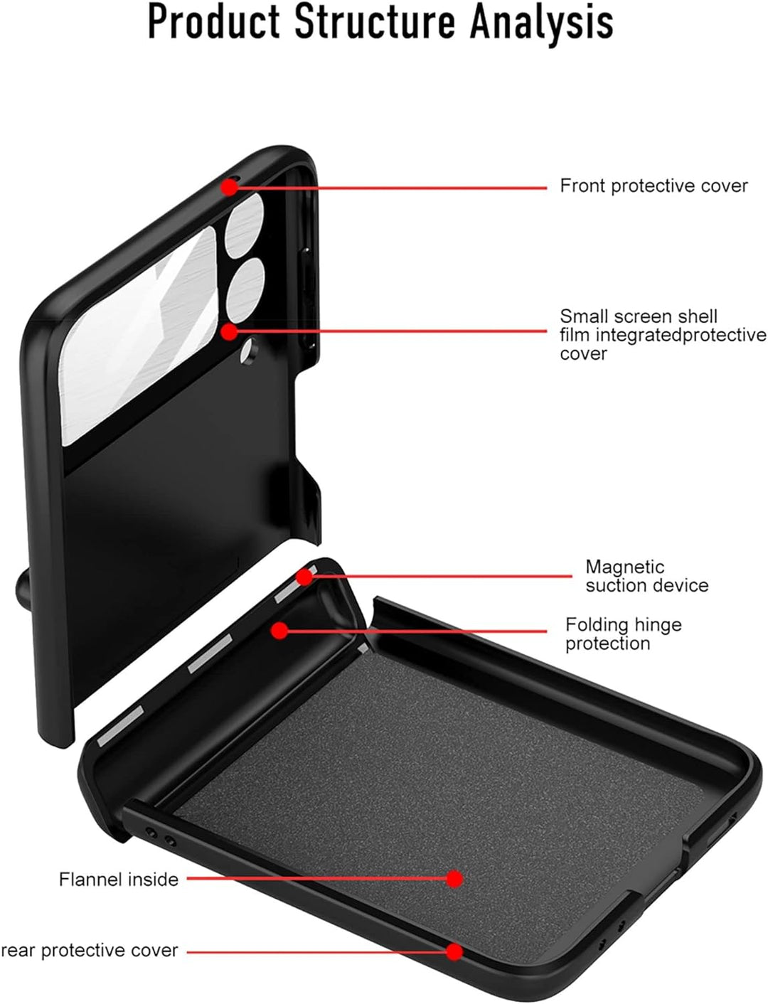- Galaxy Z Flip 4 5G Gehäuse zum Aufklappen, All-Inclusive-Scharnier, 180 ° klappbare automatische Wiederherstellungs-Magnetvorrichtung.