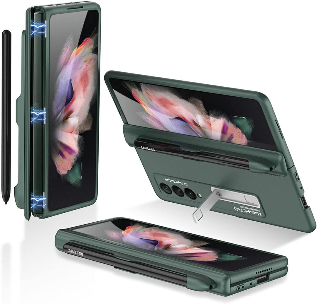 - Galaxy Z Fold 3 5G-Gehäuse mit aufklappbarem Design, mit Stiftschlitz, 360 ° All-Inclusive-Scharnier, 150 ° faltbares magnetisches Gerät zur automatischen Wiederherstellung.