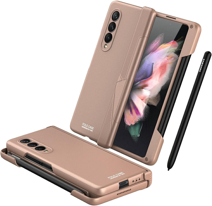 - Galaxy Z Fold 3 5G Gehäuse zum Aufklappen, Gehäuse mit Touch-Stylus, Stifthalter, 360 ° All-Inclusive-Scharnier.