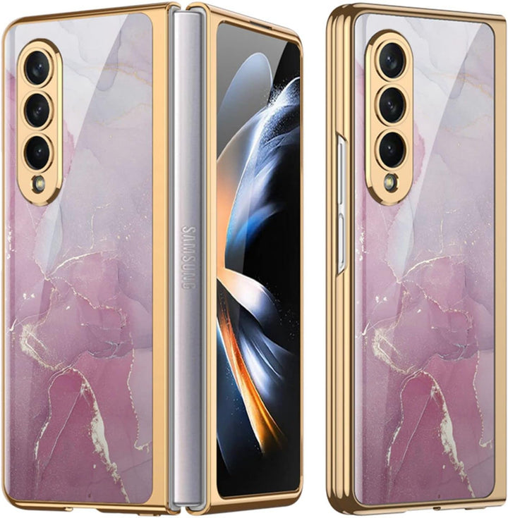 • Vergoldeter Rahmen, 9H, gehärtetes Glas, helle Farbe, Telefonhülle mit externem Displayschutz für Samsung Galaxy Z Fold 4 5G Telefon.