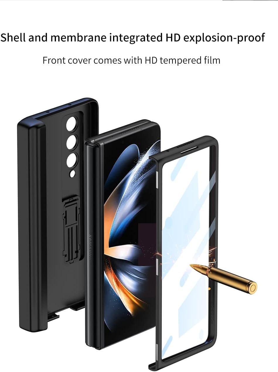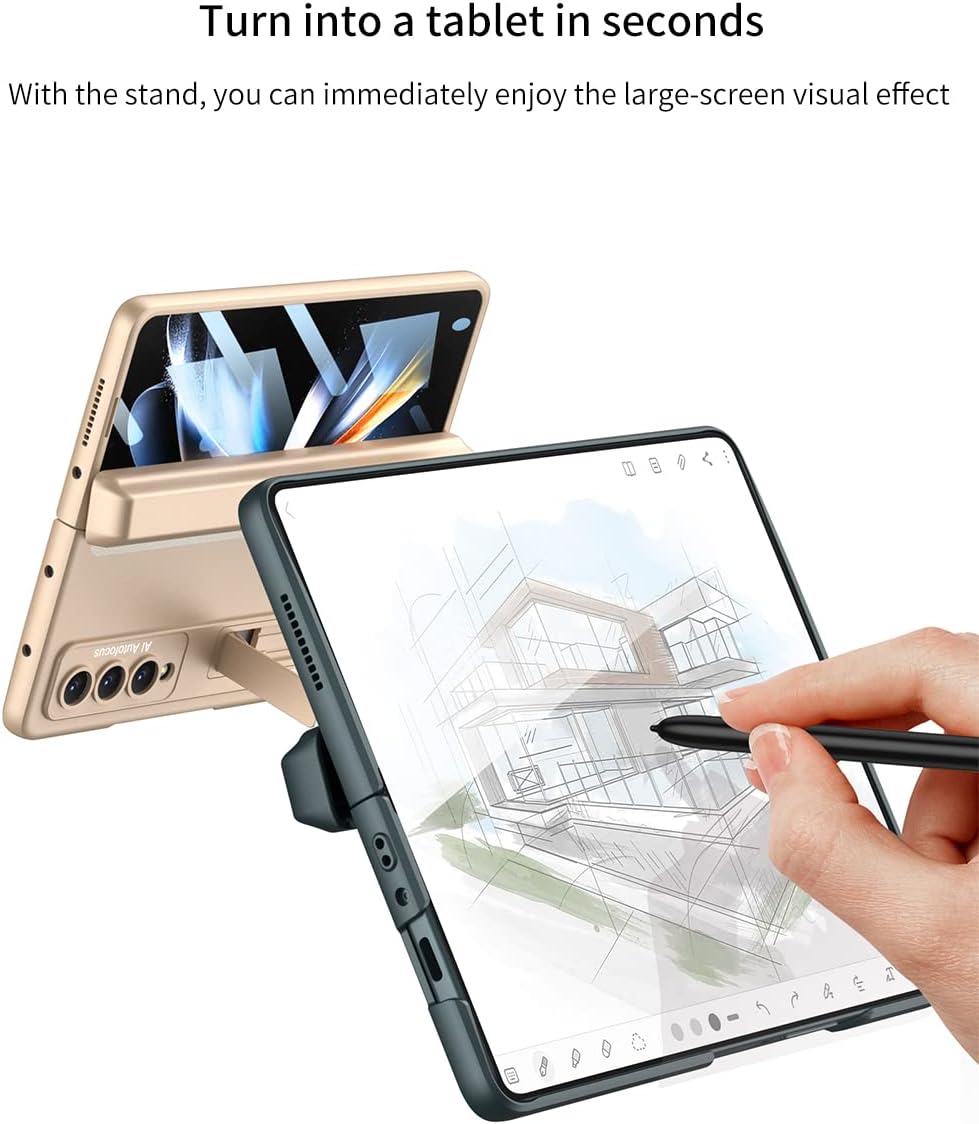 - Die All-Inclusive-Handyhülle mit Shell-Film-Scharnier aus einem Stück wird mit einem Stylus-Steckplatz geliefert, der dem Samsung Galaxy Z Fold 4 5G-Telefon gewidmet ist.