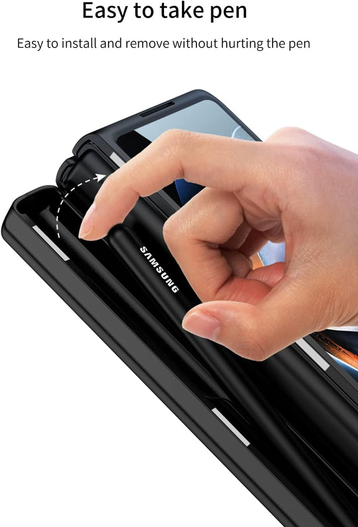 - Die All-Inclusive-Handyhülle mit Shell-Film-Scharnier aus einem Stück wird mit einem Stylus-Steckplatz geliefert, der dem Samsung Galaxy Z Fold 4 5G-Telefon gewidmet ist.