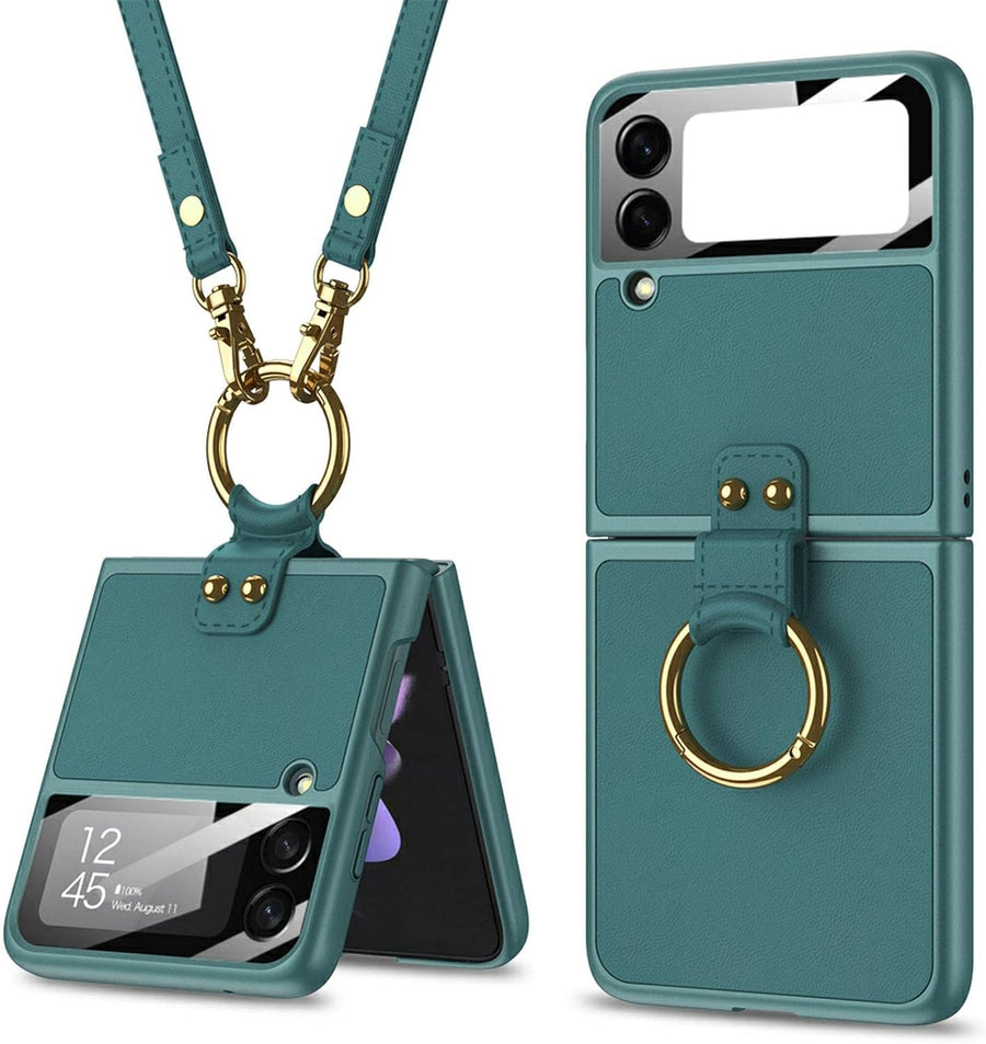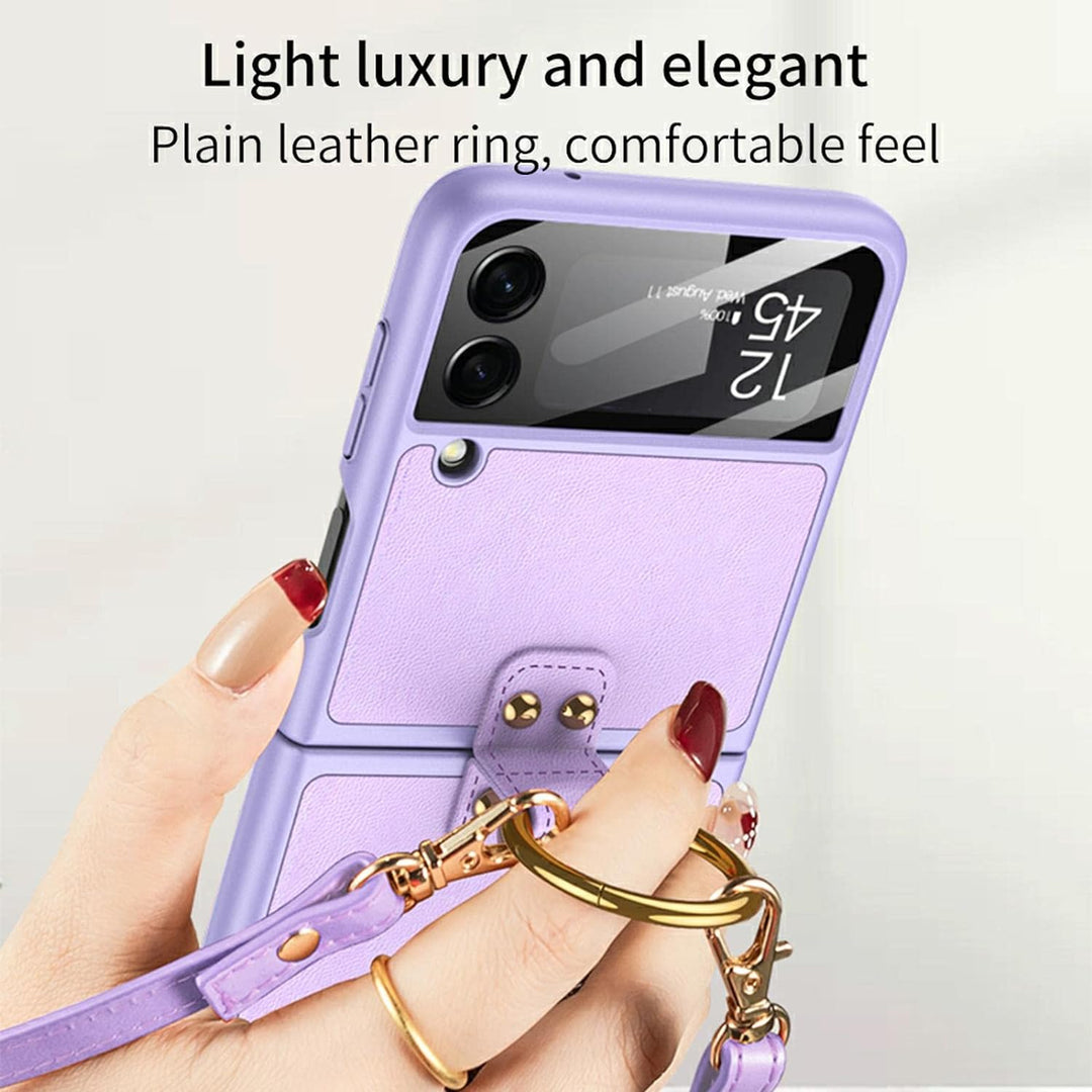 - Handgemachter Schultergurt des dünnen Ledermetallrings Schutzhülle für Samsung Galaxy Z Flip 3 5G-Handy. Handyhülle wird in Sekunden zu einer exquisiten kleinen Tasche.