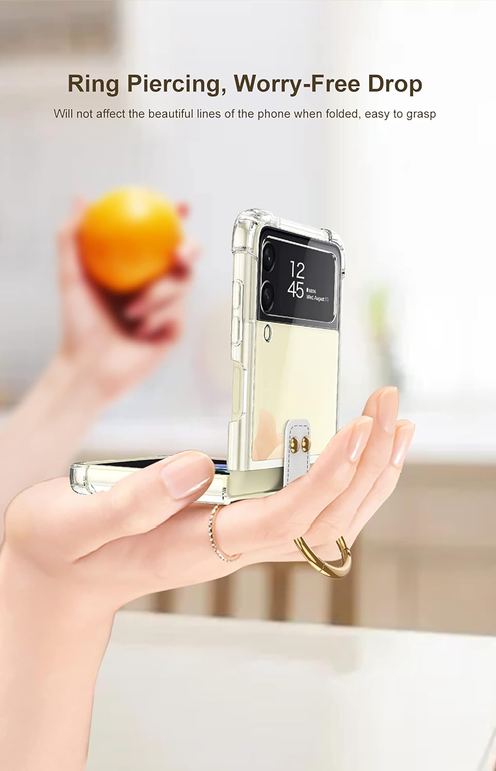 - Galaxy Z Flip 4 5G Hülle aufklappbares Design, leicht und robust, ungehindertes Öffnen und Schliessen, 180˚ zusammenfalten nach Belieben.