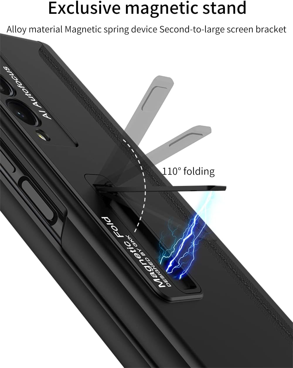 - Die Samsung Galaxy Z Fold 3 5G-Hülle ist ein exklusiver Magnetständer, 110 °faltbar, Legierungsmaterial, magnetische Federvorrichtung, zweitgrösste Bildschirmhalterung. Lieferumfang: ausser Telefon, 1 x Telefonhülle.