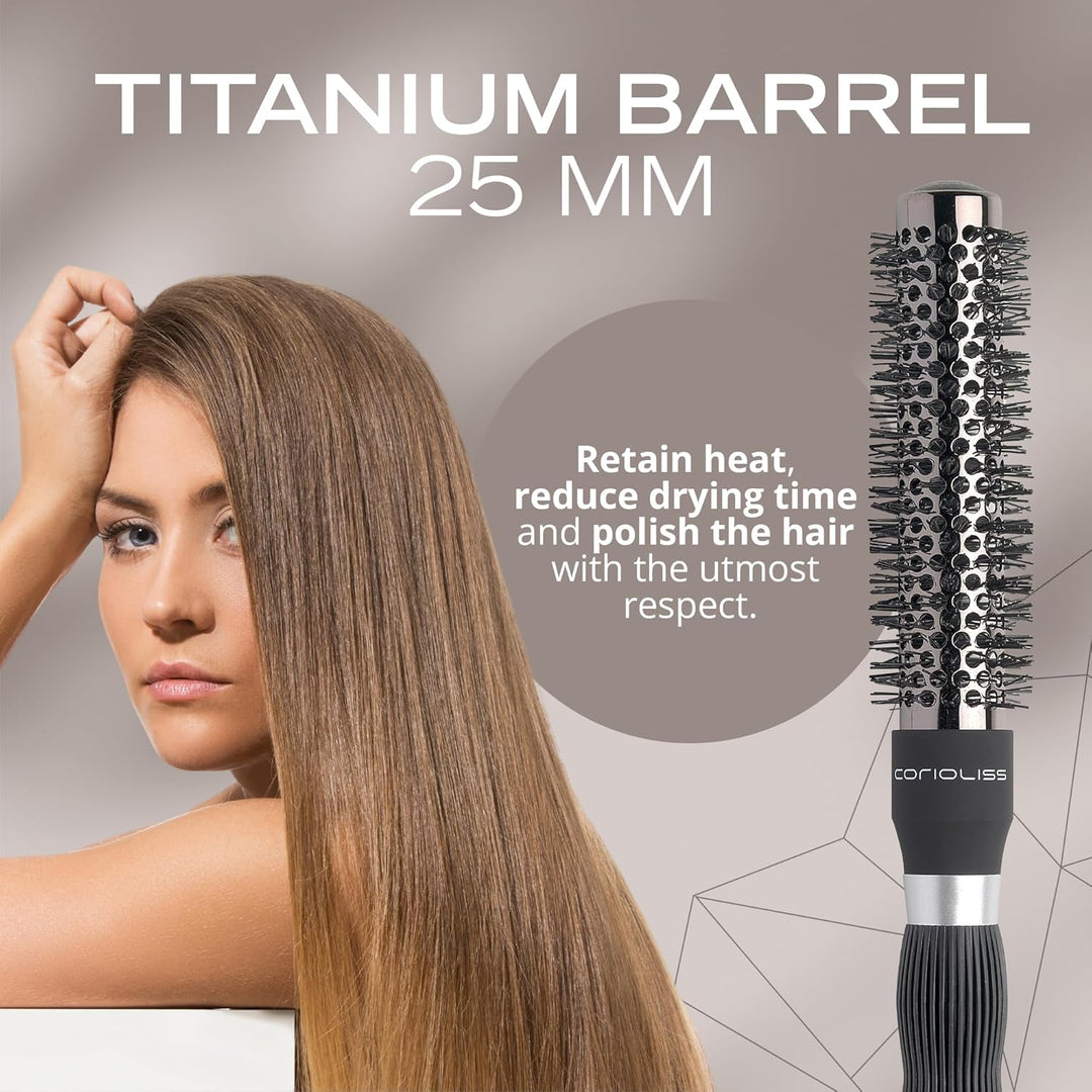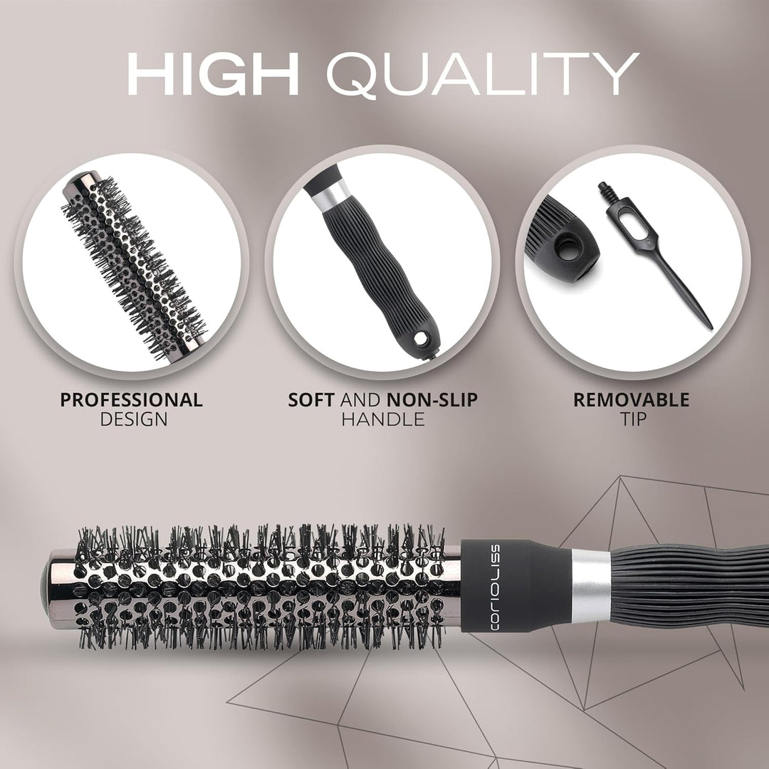 - 💇🏻【Bürsten für jede Art von Haar】In diesem Haarbürsten-Set finden Sie die neueste Linie von Bürsten, die von Corioliss in 3 Durchmessergrössen für jeden Trocknungsbedarf entwickelt wurden, 43, 33 und 25 mm.