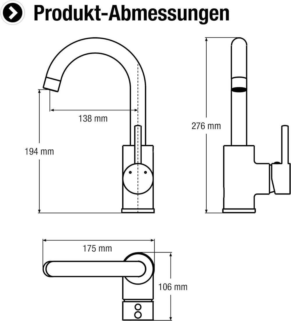 - PRODUKT-DETAILS: Ausführung: Einhebelmischer | Anwendung: Kalt- & Warmwasserversorgung | Anschluss: Hochdruck (druckfest) | Montageart: Standmontage | Rohranschlüsse: 1-Loch | Anschlusschlauchlänge: 450 mm | Material: Messing | Farbe: schwarz