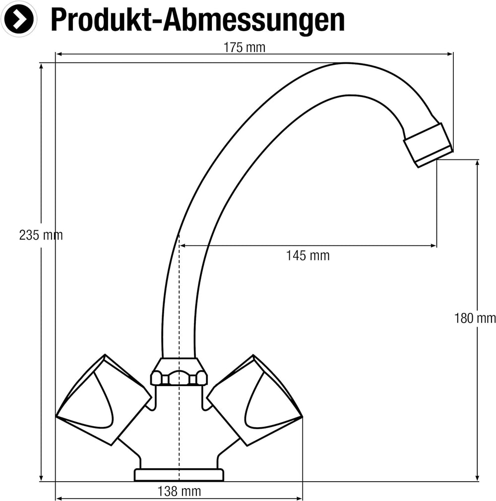 - PRODUKT-DETAILS: Ausführung: Zweigriffarmatur | Anwendung: Kalt- & Warmwasserversorgung | Anschluss: Hochdruck (druckfest) | Montageart: Standmontage | Rohranschlüsse: 1-Loch | Anschlusschlauchlänge: 350 mm | Material: Messing | Oberfläche: verchromt