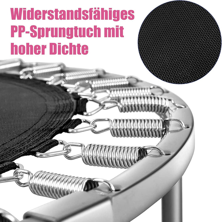 - 【Gute Verarbeitung】 Das Trampolin ist mit einer PVC-Abdeckung ausgestattet, wodurch sie nirgendwo mit den Füssen steckenbleiben können. Ausserdem ist der Rand somit weicher. Durch dieses Detail werden Sie vor Verletzungen geschützt.