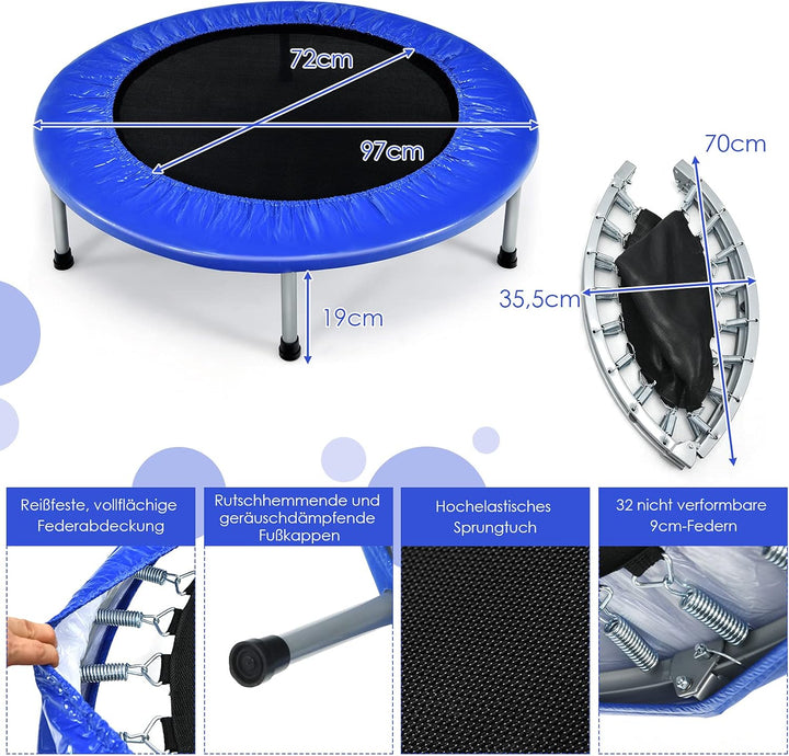 - 【Perfektes Fitnessgerät】 Dieses Klapptrampolin ist ideal für die ganze Familie!Besonders Kinder können sich damit gesund entwickeln und fit werden,Erwachsene können aber genauso trainieren. Das Trampolin sorgt für einen gesünderen Alltag.