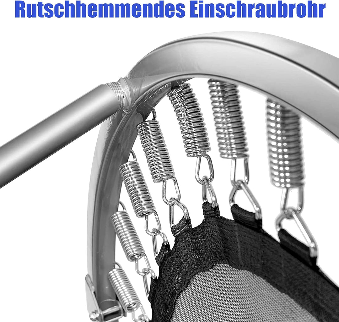 - 【Gute Verarbeitung】 Das Trampolin ist mit einer PVC-Abdeckung ausgestattet, wodurch sie nirgendwo mit den Füssen steckenbleiben können. Ausserdem ist der Rand somit weicher. Durch dieses Detail werden Sie vor Verletzungen geschützt.