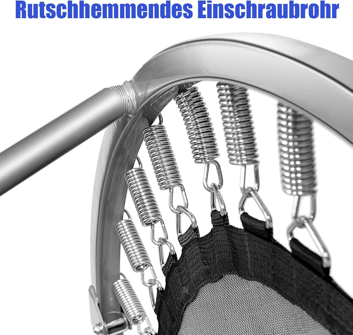 - 【Hohe Sicherheit】 Die 32 Federn mit Sicherheitsschnallen verteilen das Gewicht gleichmässig und verhindern Verletzungen. Ausserdem ist mit den sechs Stahlbeinen eine Tragfähigkeit von150 kg gegeben. Das Trampolin ist sicher nutzbar.