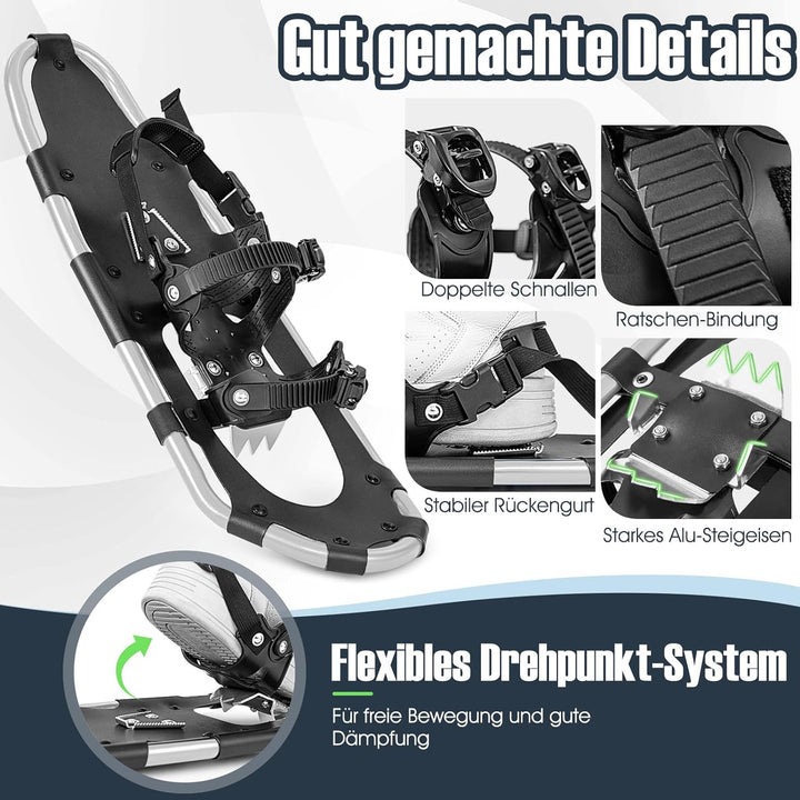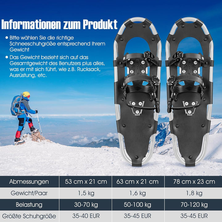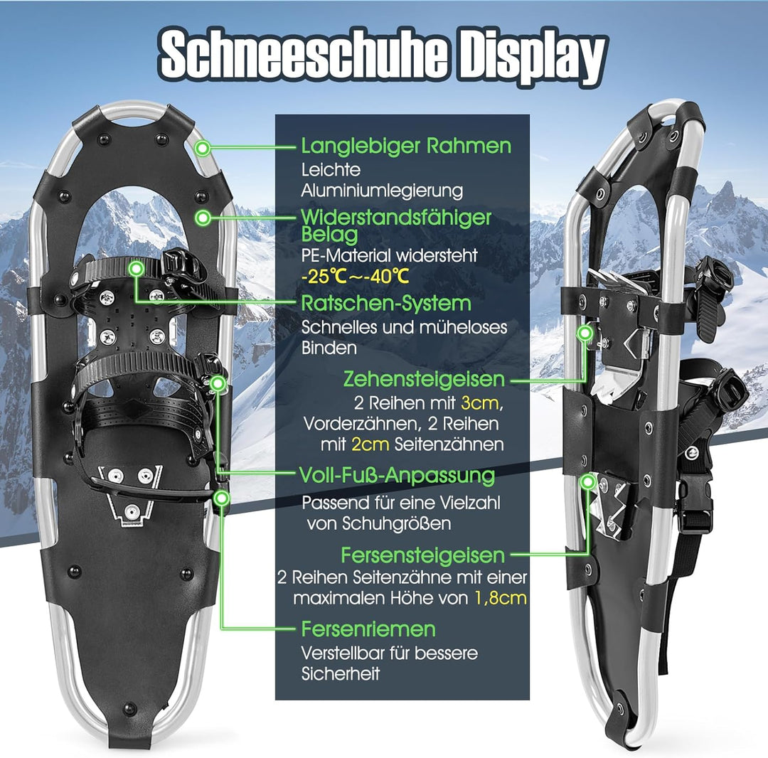 - 【Leichtes und tragbares Design】Die leichten Schneeschuhe für Erwachsene und Kinder sind arbeitssparend und einfach zu tragen. Mit einem Gesamtnettogewicht von weniger als 2,9 kg ist dieses Schneeschuhset bequem zu tragen und zu transportieren. Das