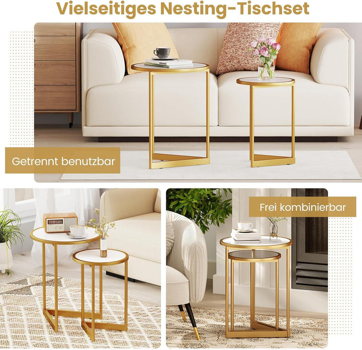 - 【Platzsparender Satz-Couchtisch】 Sie können die Satztische so anordnen, wie Sie möchten. Sie ineinander zu verschachteln ist eine gute Möglichkeit, Platz zu sparen. Und es ist auch eine gute Wahl, sie separat zu verwenden, um ihre Funktion