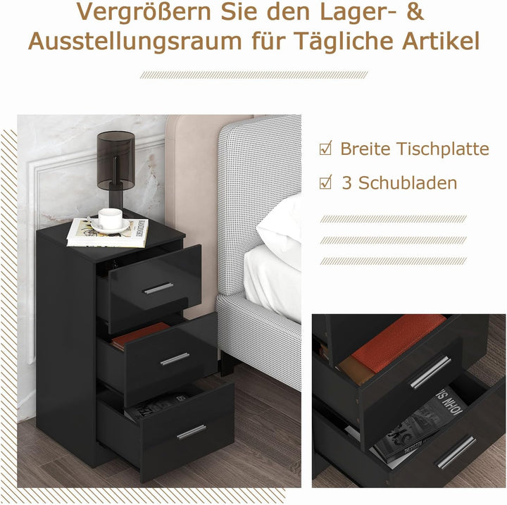 - 【Stilvolle und Zeitgemässe Optik】Dieser Nachtschrank erhält durch seine Lackierung eine moderne und glänzende Optik, die durch die glatten, schlichten Griffe ideal komplementiert wird.