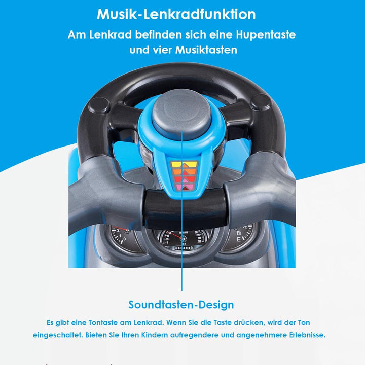 - 【Unterhaltsames Fahrerlebnis】Dieses Rutschauto verfügt über 4 Premium-Räder und 1 flexibles Lenkrad mit 1 Hupenknopf für ein angenehmes Fahrerlebnis. Zur Steuerung kann ganz einfach das Lenkrad genutzt werden. 4 robuste Räder ermöglichen es den