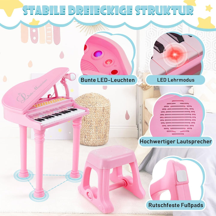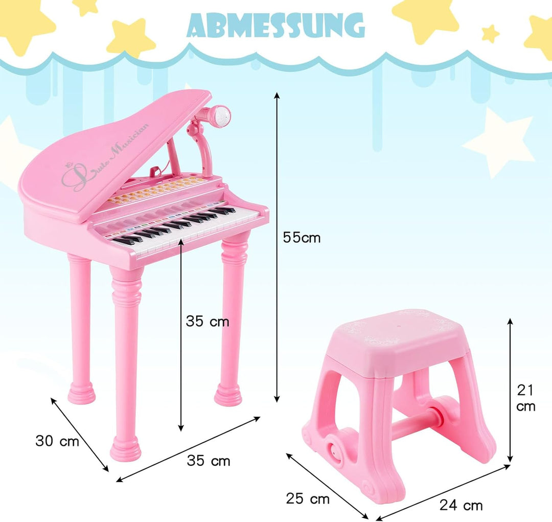 - 🎹【Ausgewählte Materialien & sicheres Design】Dieses tragbare Spielzeugklavier besteht aus hochwertigen ABS- und PE-Materialien und begleitet Kinder beim Erwachsenwerden. Darüber hinaus sorgt die stabile Dreiecksstruktur für Gesamtstabilität.