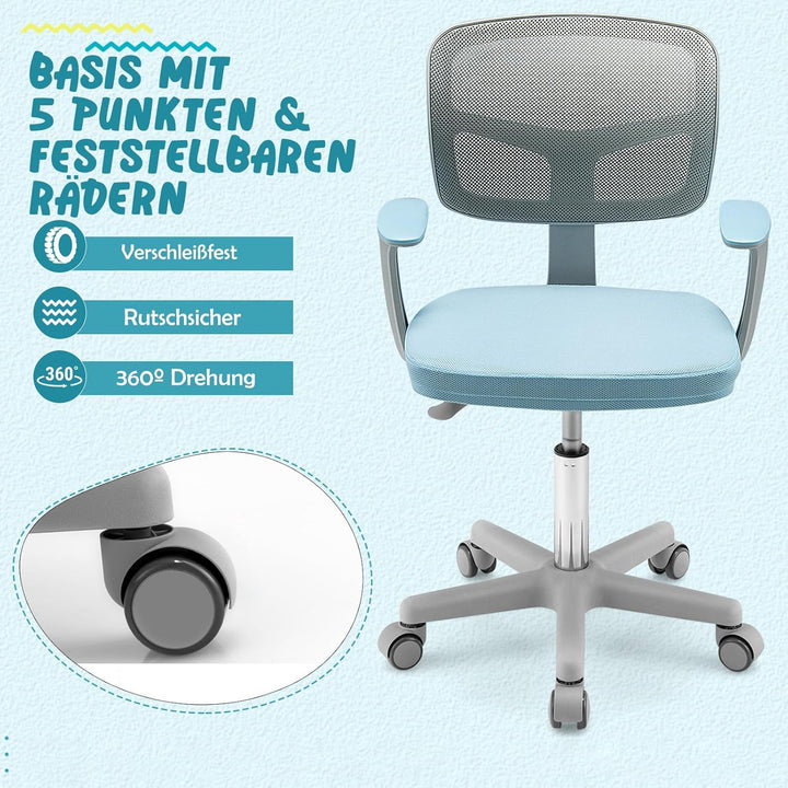- 【360° Drehbar & Leichte Bewegung】 Für die Bequemlichkeit von Kindern kann der Sitz um 360° gedreht werden, und an der Unterseite befinden sich 5 Universalräder, die den Stuhl frei bewegen können, ohne den Boden zu zerkratzen. Der Stuhl verwendet