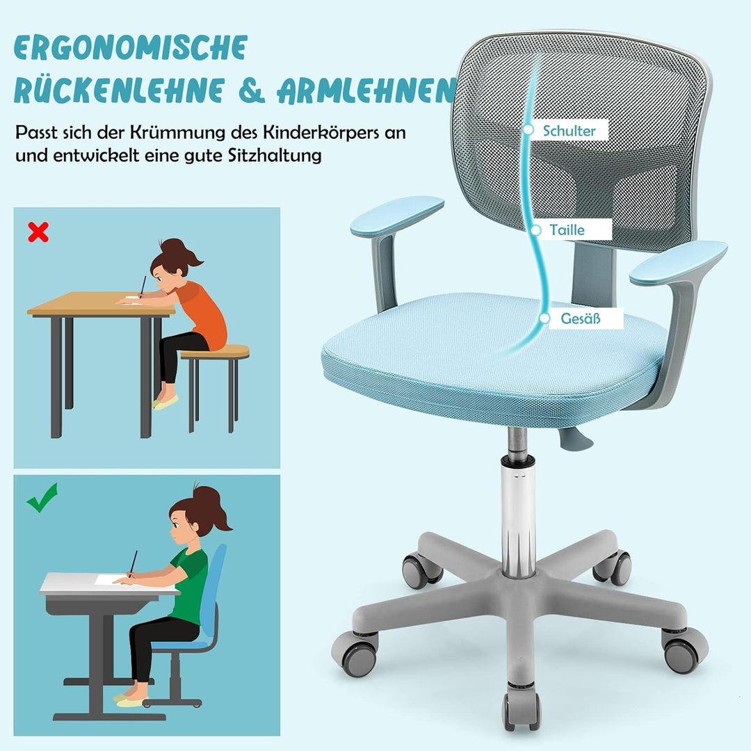- 【Ergonomisches Design & Gute Haltung】Mit Y-förmiger Lordosenstütze und einem sehr bequemen Sitz ist dieser Kinderstuhl ideal, um Ihr Kind in der richtigen Sitzposition zu halten und Haltungsschäden vorzubeugen. Der gebogene Rücken und die