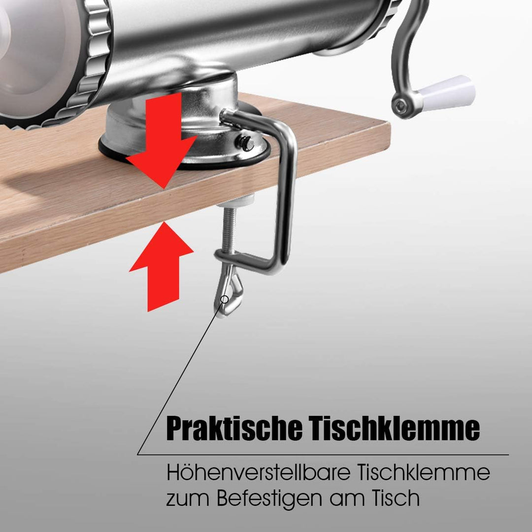 - 🍴【Starke Stabilität】Mit einer Tischklemme kann die Wurstmaschine fest am Tisch verankert werden, gewährleistet eine rutschfeste und angenehme Arbeit.