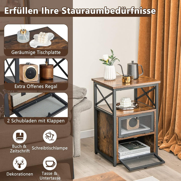 - 【Effiziente Aufbewahrung】 Die Tischplatte ist perfekt für Ihre Kaffeetasse, Fotorahmen oder Gläser. Darüber hinaus bieten das zusätzliche offene Ablagefach und 2 Klappschubladen ausreichend Stauraum. Und die 2 Klappschubladen verfügen über