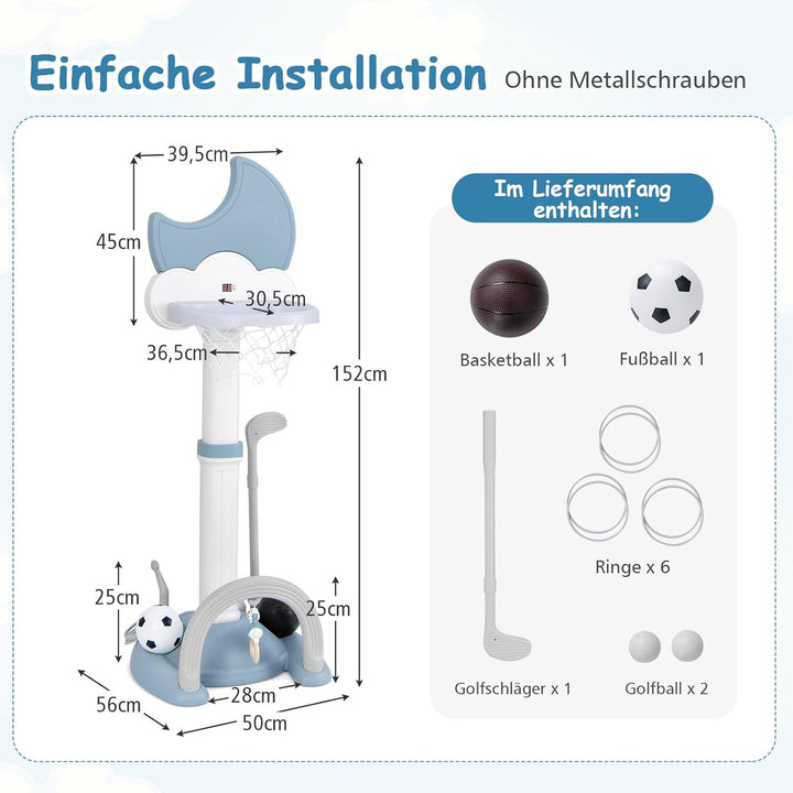 - 【4-in-1 Aktivitätszentrum】Dieses niedliche Aktivitätszentrum bietet Unterhaltung in vier beliebten Spielen: Basketball, Fussball, Golf und Ringwurf. Dieser Kinder Spielplatz spart Platz und sorgt für abwechslungsreiche Unterhaltung für Kinder.