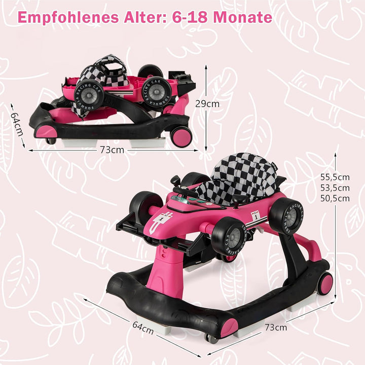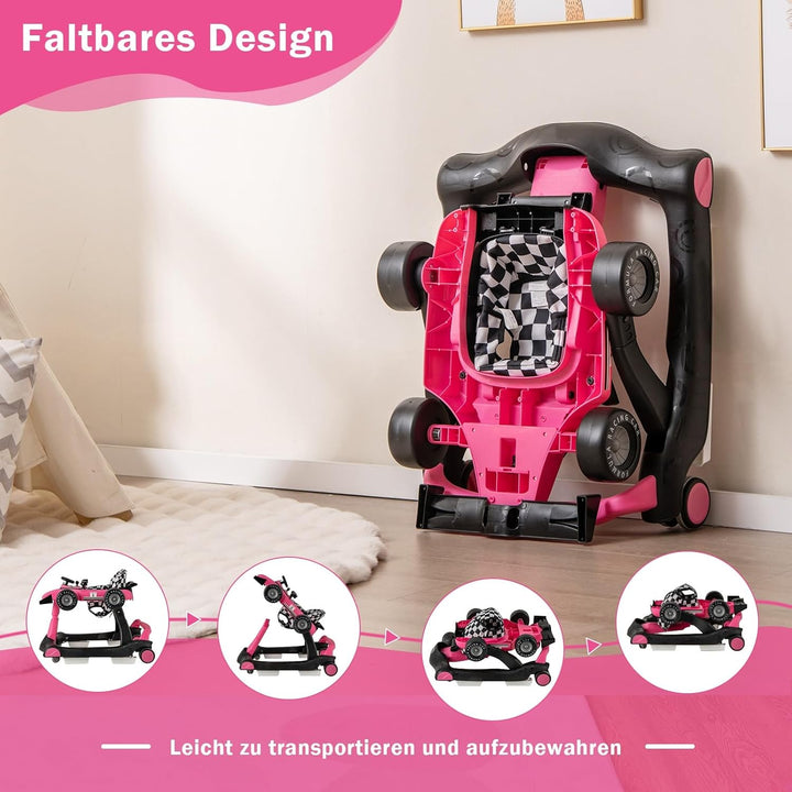 - đăInteraktives DesignăDie Lauflernhilfe hat ein Lenkrad, GĂ€nge, 2 Lichtknöpfe und 2 Spiegel, wodurch sie wie einen kleinen Babykart aussieht. Ausserdem kann Musik abgespielt werden und es werden 2 AA Batterien (nicht inklusive) benötigt.