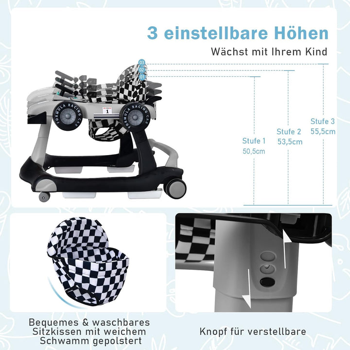 - 🚘【Für Sicherheit & Komfort】Die Lauflernhilfe ist mit einer Kopfstütze versehen, die den Kopf des Kindes schützt. Die 5 Anti-Rutsch-Pads an der Unterseite und 4 rutschfesten Räder tragen zur Sicherheit Ihrer KInder bei. Zudem ist der Sitzbezug