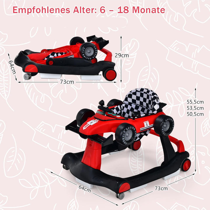 - đăInteraktives DesignăDie Lauflernhilfe hat ein Lenkrad, GĂ€nge, 2 Lichtknöpfe und 2 Spiegel, wodurch sie wie einen kleinen Babykart aussieht. Ausserdem kann Musik abgespielt werden und es werden 2 AA Batterien (nicht inklusive) benötigt.