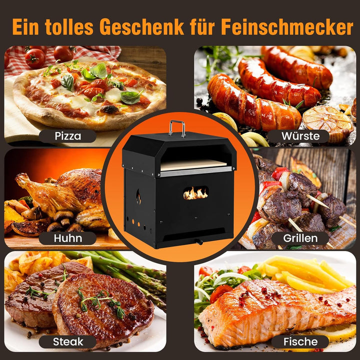 - 【Komplettes Zubehör und schnelle Montage】Dieser 4-in-1-Pizzaofen für den Aussenbereich wird mit umfangreichem Zubehör geliefert, darunter ein Pizzastein, eine Pizzaschaufel, ein Grillgitter und eine wasserdichte Oxford-Stoffabdeckung. Darüber
