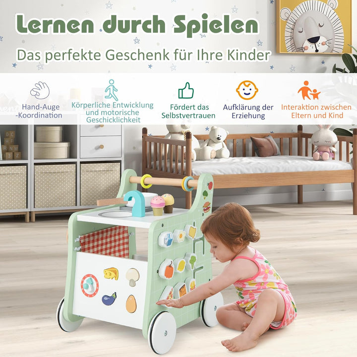 - 🥘【Tolles Geschenk】Dieser hölzerne Lauflernwagen mit integrierter Spielküche ist ein tolles Geschenk für Kinder ab 12 Monaten. Bei abwechslungsreichen Spielen können Kinder ihre Motorik, Fantasie & Kreativität, Hand- & Koordinationsfähigkeit
