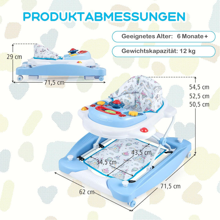 - đ€ăAbnehmbares MusiktablettăMit Drehkugeln, Lichtern, Lenkrad und Hupe, Instrumententafel, SchlĂŒsseln und Knöpfen verleiht das Musiktablett dem Lauferlebnis ein Element des Spasses. Ausserdem macht sein abnehmbares Design diesen Laufwagen fĂŒr