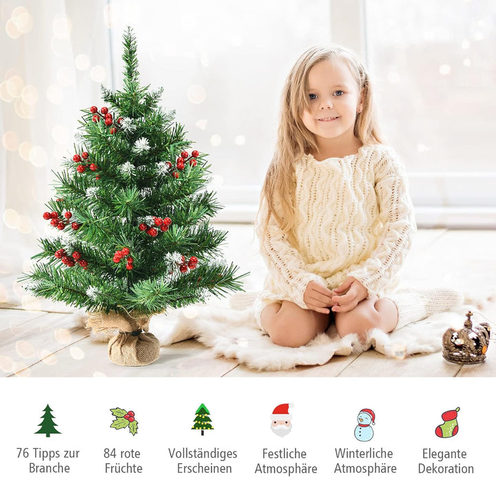 - 【Verschneiter Charme】Trotz seiner kleinen Grösse wirkt dieser volle Baum mit seinen 76 Zweigen fast wie echt. Durch das verschneite Design sorgt er für eine tolle winterliche Atmosphäre.