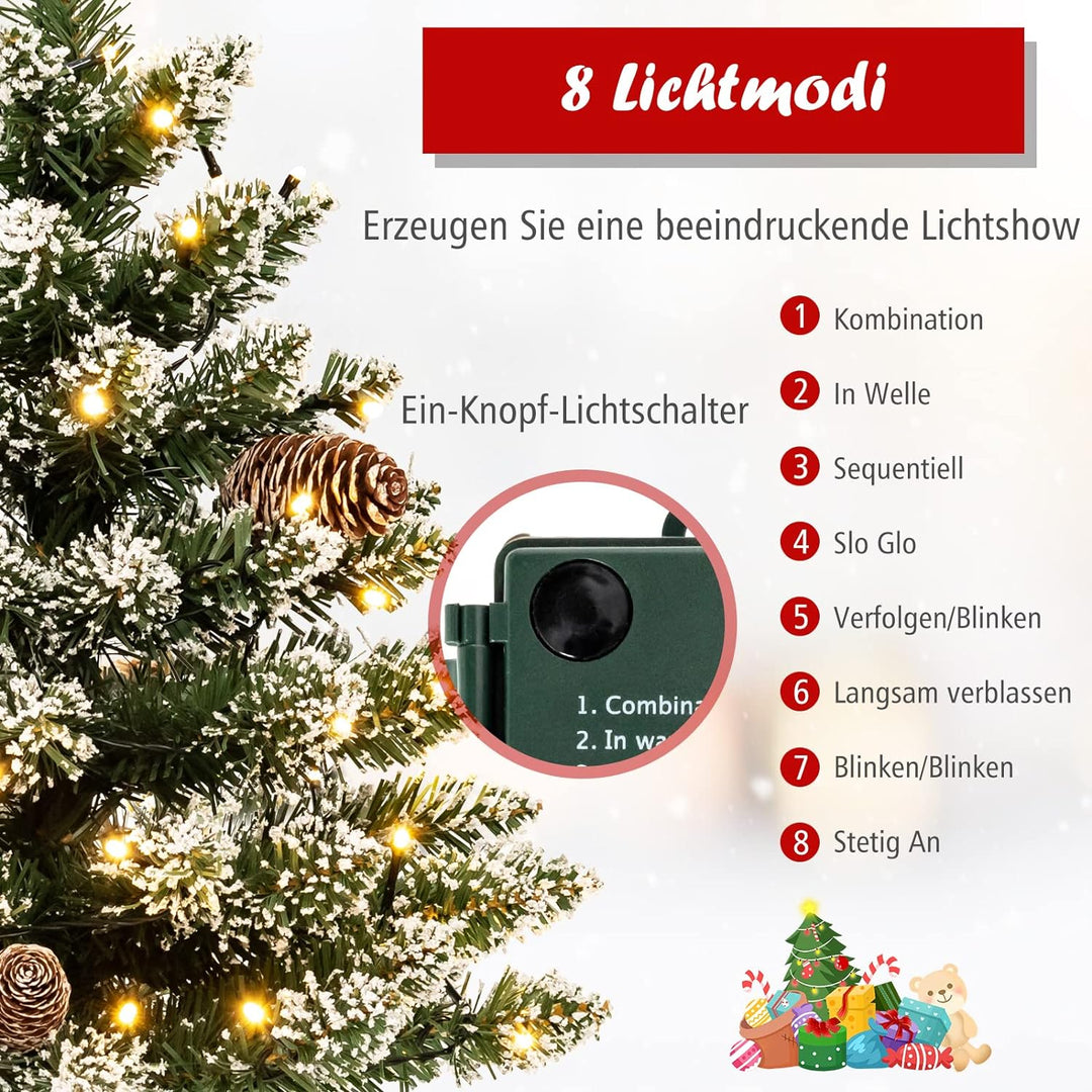 - 🎄【Kraftvolle vorgespannte Lichter】Ausgestattet mit 50 LED-Lichtern am 60 cm grossen künstlichen Weihnachtsbaum haben Sie mehr Zeit, den Baum zu schmücken. Darüber hinaus werden warm-weisse Lichter Ihren Raum in 8 Modi beleuchten, die Sie